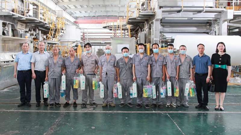 在市場與工廠內(nèi),李文華同奮戰(zhàn)在生產(chǎn)經(jīng)營一線的員工親切交談,將一份份“清涼禮包”送到他們手中,對大家愛崗敬業(yè)的精神與辛苦付出表示衷心感謝,并叮囑他們做好防暑措施,注意勞作安全。