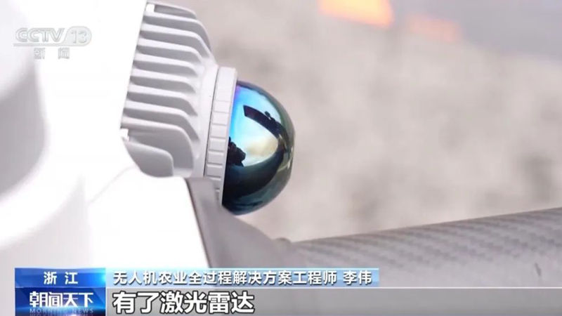 無人機(jī)農(nóng)業(yè)全過程解決方案工程師 李偉:這個(gè)就是我們新的激光雷達(dá),它讓整個(gè)飛機(jī)變得更加聰明、更加智慧、更加智能。我們田間的障礙物很多很復(fù)雜的,有了激光雷達(dá),它對(duì)0.5毫米的障礙物都可以檢測到,就像一個(gè)“二郎神”的眼睛一樣,看得更遠(yuǎn),看得更清。