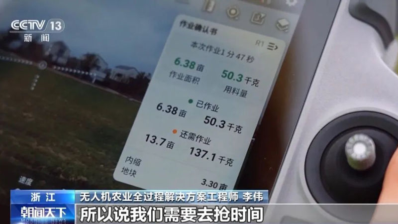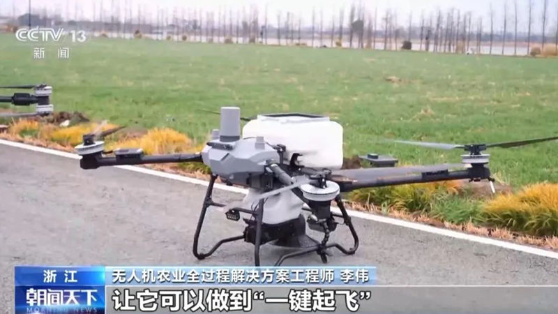 總臺(tái)央視記者 蔣樹林:在浙北大糧倉——浙江省嘉興市的嘉善縣,這臺(tái)無人機(jī)是今年剛剛新出的最新的型號(hào)。