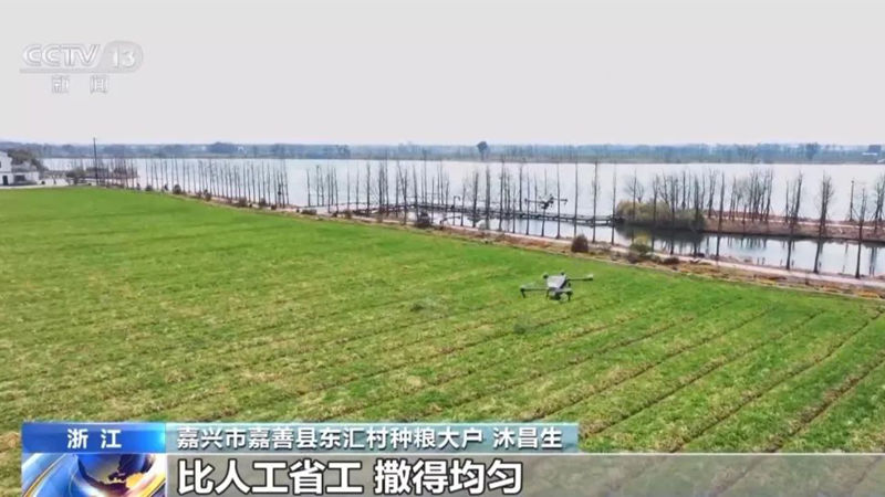 嘉興市嘉善縣東匯村種糧大戶 沐昌生:這個(gè)無人機(jī)撒當(dāng)然好,比人工省工,撒得均勻。